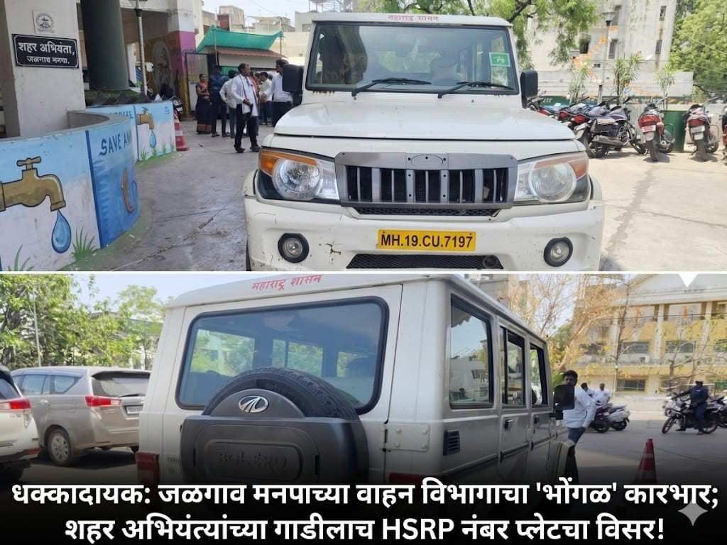 आरटीओ (RTO) विभागाकडून सध्या सर्वसामान्य नागरिकांच्या वाहनांना एचएसआरपी नंबर प्लेट असणे अनिवार्य करण्यात आले आहे. ही प्लेट नसल्यास वाहनधारकांना चक्क ५ हजार रुपयांपर्यंतचा दंड ठोठावला जात आहे. मात्र, जळगाव महानगरपालिकेच्या परिसरातच अधिकाऱ्यांच्या वाहनांची स्थिती पाहता, “कायदा फक्त सर्वसामान्यांसाठीच आहे का?” असा संतप्त सवाल नागरिक विचारत आहेत. शहर अभियंत्यांच्या वाहनाला नंबर प्लेट नसणे, हे प्रशासकीय निष्काळजीपणाचे जिवंत उदाहरण मानले जात आहे.