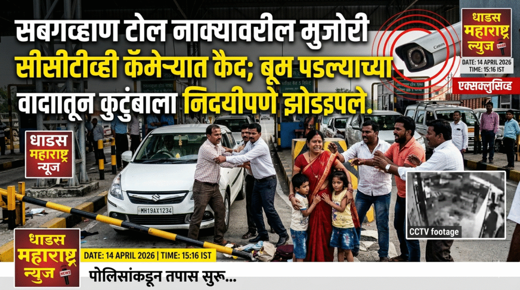 पारोळा (प्रतिनिधी) : फास्टॅगची सुविधा असूनही टोल कर्मचाऱ्यांच्या मुजोरीचा एक संतापजनक प्रकार समोर आला आहे. टोलचा बूम बोनेटवर पडल्याच्या किरकोळ वादातून सबगव्हाण टोल नाक्यावरील १० ते १२ कर्मचाऱ्यांनी एका महिलेसह तिच्या कुटुंबावर लाठ्या-काठ्या आणि लोखंडी बादलीने निर्दयीपणे प्राणघातक हल्ला केला. ही घटना रविवारी, १२ एप्रिल रोजी दुपारी सव्वा चार वाजेच्या सुमारास घडली असून संपूर्ण थरार सीसीटीव्ही कॅमेऱ्यात कैद झाला आहे.
