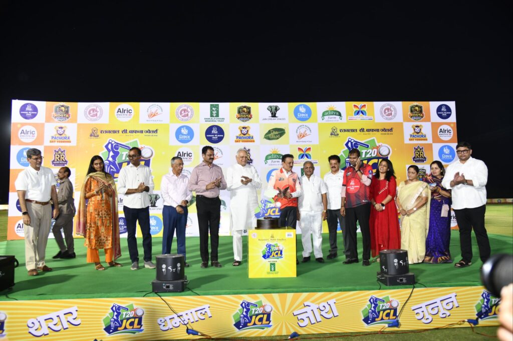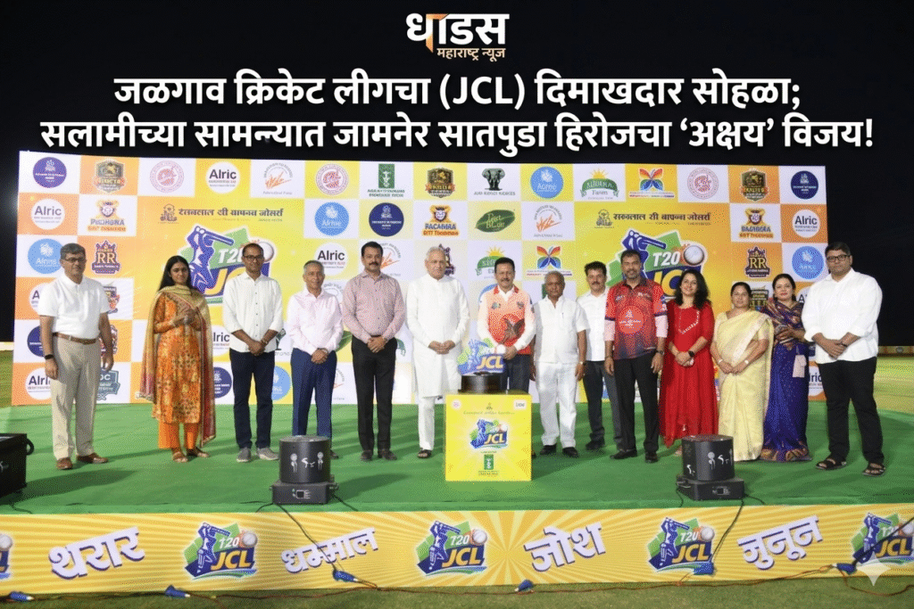 जळगाव जिल्हा क्रिकेट असोसिएशनच्या वतीने आयोजित आणि रतनलाल सी. बाफना ज्वेलर्स प्रायोजित ‘जळगाव क्रिकेट लीग-२०२६’ (JCL T-20) या क्रिकेट महाकुंभाचा शनिवारी कांताई नगर येथील जैन ड्रीम स्पेसेसच्या भव्य मैदानावर मोठ्या उत्साहात प्रारंभ झाला. राजकीय, सामाजिक आणि क्रीडा क्षेत्रातील दिग्गजांच्या उपस्थितीत झालेल्या या सोहळ्यात जामनेर सातपुडा हिरोजने पाचोरा एसकेटी योद्धाजवर ६ गडी राखून मात करत स्पर्धेत विजयी सलामी दिली.