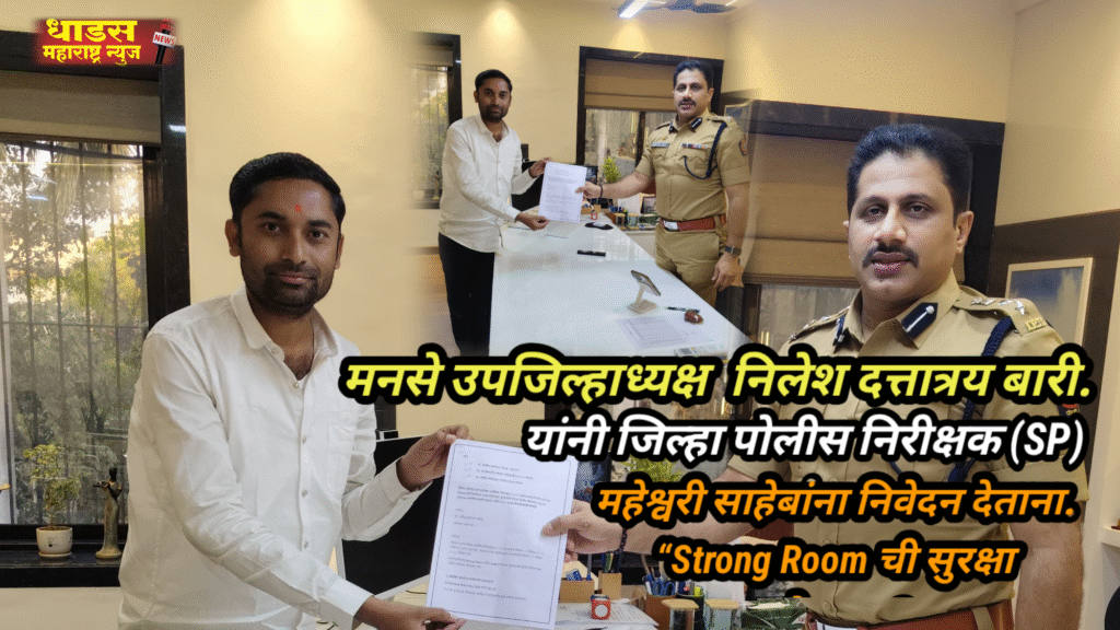 (SP) जिल्हा पोलीस निरीक्षक महेश्वरी साहेबांनी निवेदन स्वीकृतीदरम्यान सर्व बाबींची गांभीर्याने दखल घेत कायदा सुव्यवस्था आणि Strong Room सुरक्षा अधिक बळकट करण्याचे आश्वासन दिले.