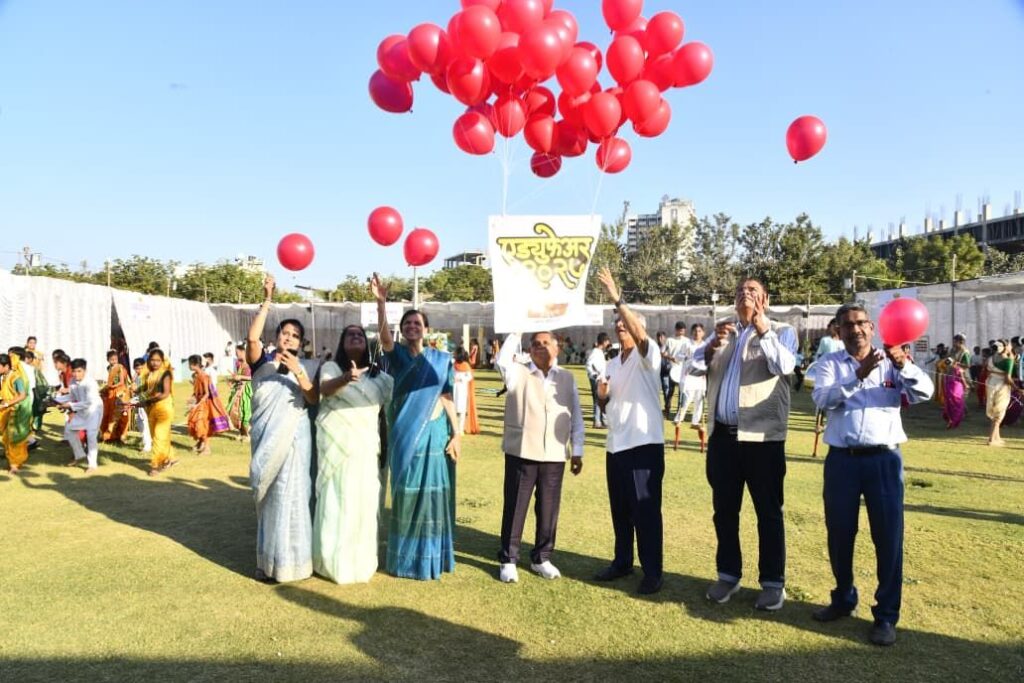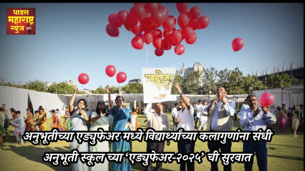 फोटो कॅप्शन- अनुभूती स्कूलच्या एड्युफेअर -२०२५ चे आकाशात फुगे सोडून उद्घाटन करताना डावीकडून रूपाली वाघ, रश्मी लाहोटी, निशा जैन, प्रेम कोगटा, अशोक जैन, अनिश शहा, मनोज दाडकर