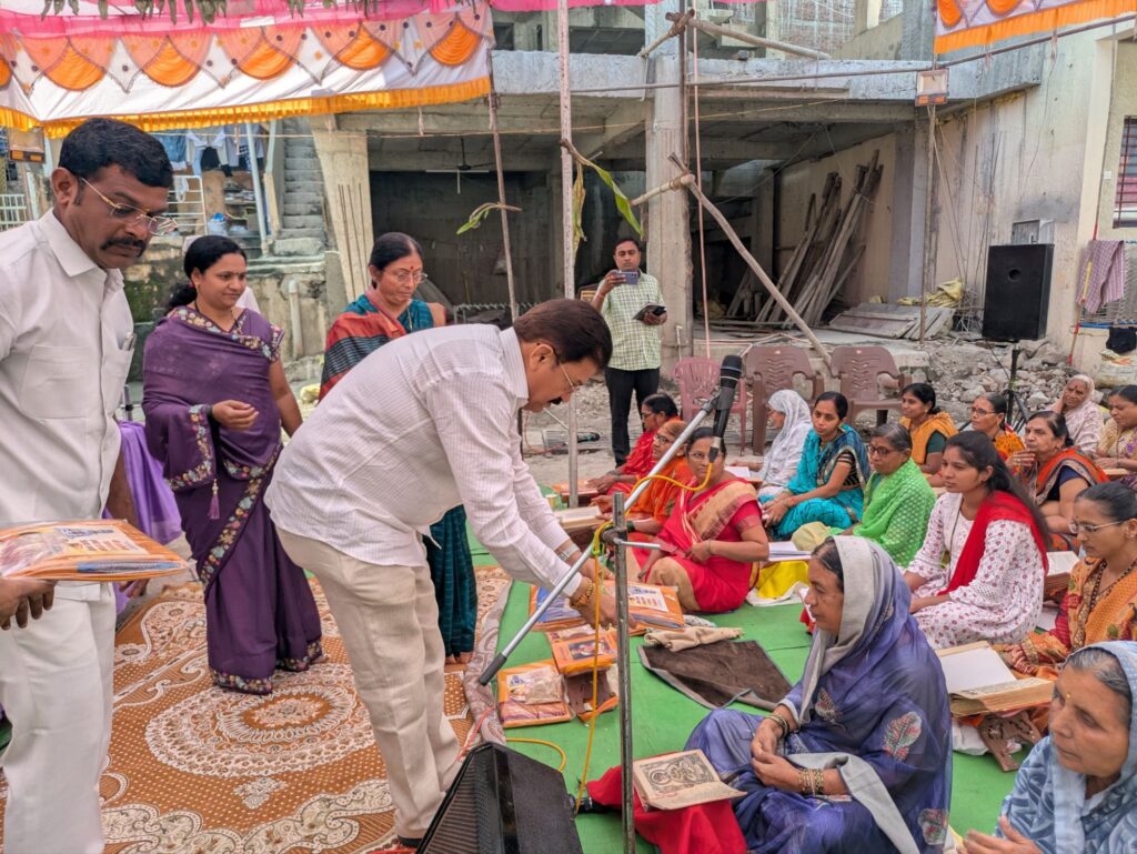 या पारायण सप्ताहातील विशेष उपक्रमांतर्गत आज आमदार राजू मामा भोळे व मा. महापौर ज.श.म.न.पा सौ.सीमाताई भोळे यांच्या हस्ते पारायण बसलेल्या महिलांना पैठणी वाटप करण्यात आले. प्रत्येक लाभार्थी महिलेच्या चेहऱ्यावर आनंद आणि समाधानाची झळाळी पाहायला मिळाली.