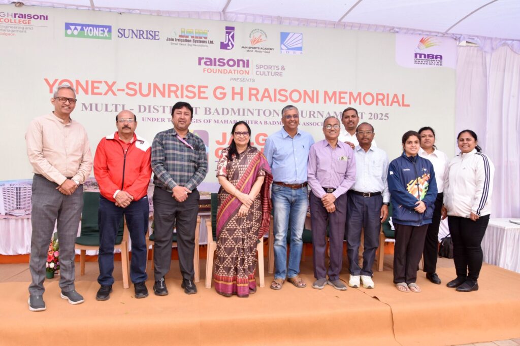 जळगाव दि.२४ प्रतिनिधी. जळगाव जिल्हा बॅडमिंटन व जैन स्पोर्टस अकॅडमी आयोजीत योनेक्स सनराइज जी एच रायसोनी “जळगाव ओपन २०२५” बॅडमिंटन टूर्नामेंट चे उद्घाटन आज जिल्हा क्रीडा संघाच्या बॅडमेंटन हॉल येथे झाले. रायसोनी फाउंडेशन स्पोर्ट्स अॅण्ड कल्चर प्रायोजित व जैन इरिगेश सिस्टीम्स लि. व जळगाव जिल्हा क्रीडा संघ सहप्रायोजीत ही स्पर्धा महाराष्ट्र बॅडमिंटन संघटनेकडून मान्यता प्राप्त आहे.