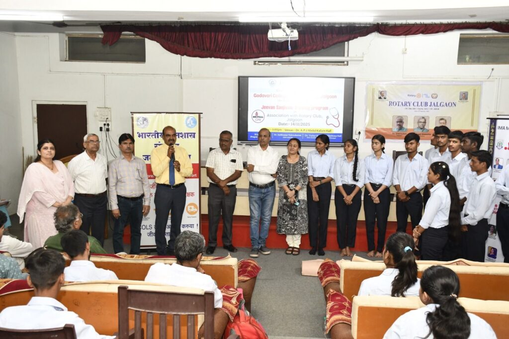 दिनांक – १४/११/२०२५ रोजी गोदावरी अभियांत्रिकी महाविद्यालय, जळगाव आणि रोटरी क्लब जळगाव व सोसायटी ऑफ अनेस्थेशिऑलॉजिस्टच्या संयुक्त विद्यमाने जीवन संजीवनी आपात्कालीन उपचार व CPR प्रशिक्षण कार्यक्रम* उत्साहात पार पडला.