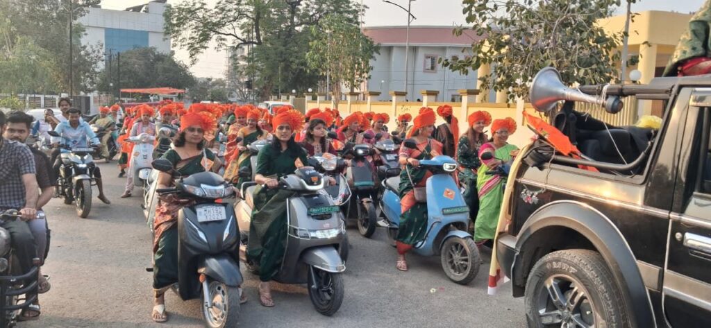 जळगाव: सार्वजनिक शिवजयंती महोत्सव समितीतर्फे छत्रपती शिवाजी महाराज यांच्या जन्मोत्सवाचे औचित्य साधून जळगाव शहरात भव्य दुचाकी रॅलीचे आयोजन करण्यात आले होते. या रॅलीचे मुख्य आकर्षण म्हणजे शहरातील महिलांनी मिळवलेला उत्स्फूर्त प्रतिसाद आणि त्यांचा मोठ्या संख्येने असलेला सहभाग.