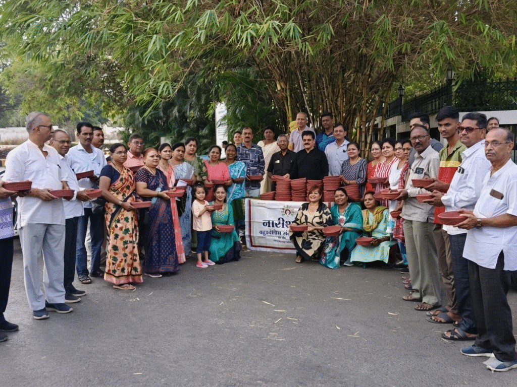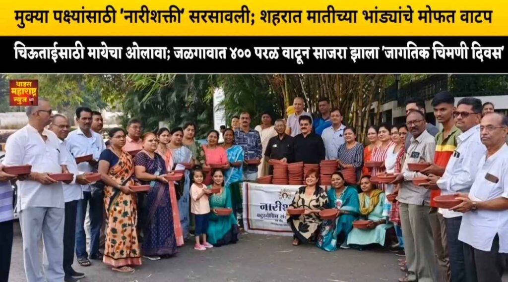 जळगाव : वाढत्या उन्हाच्या झळा केवळ माणसांनाच नाही, तर मुक्या पक्ष्यांनाही सोसाव्या लागत आहेत. याच पार्श्वभूमीवर ‘जागतिक चिमणी दिवसा’चे औचित्य साधून शहरातील काव्यरत्नावली चौकात नारीशक्ती बहुउद्देशीय संस्थेच्या वतीने पक्ष्यांसाठी ४०० परळ (पाणी ठेवण्याची भांडी) वाटपाचा स्तुत्य उपक्रम राबविण्यात आला.